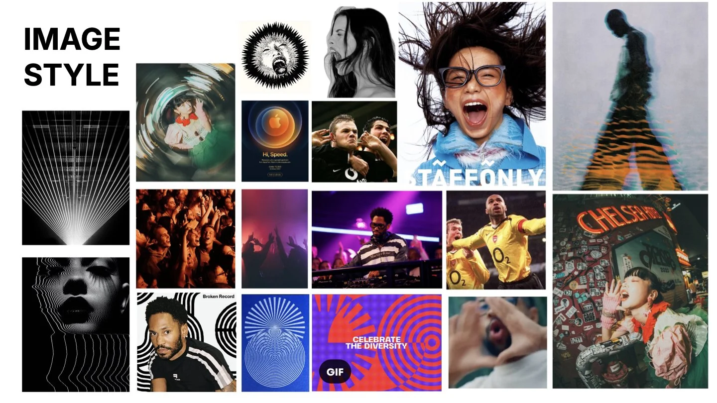 I designed a variable logo system that shifts depending on tool and environment, and an identity inspired by avant garde experimentation, fan engagement at sports arenas, and vibrant rave culture.