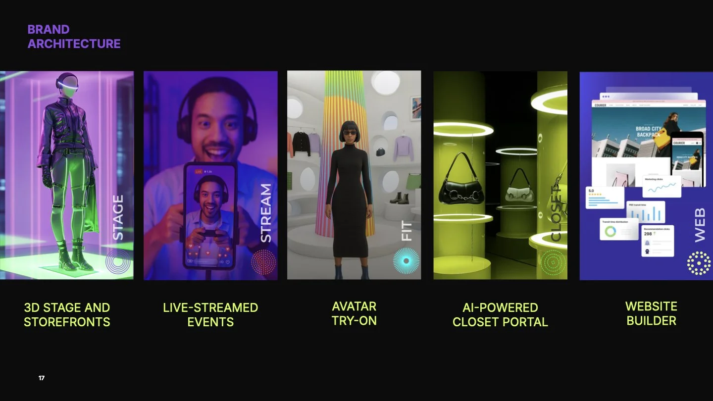 A virtual amphitheater or editorial stage for product storytelling, seasonal launches, collaborations, and content drops. Think virtual stores, runways, and virtual product drops.