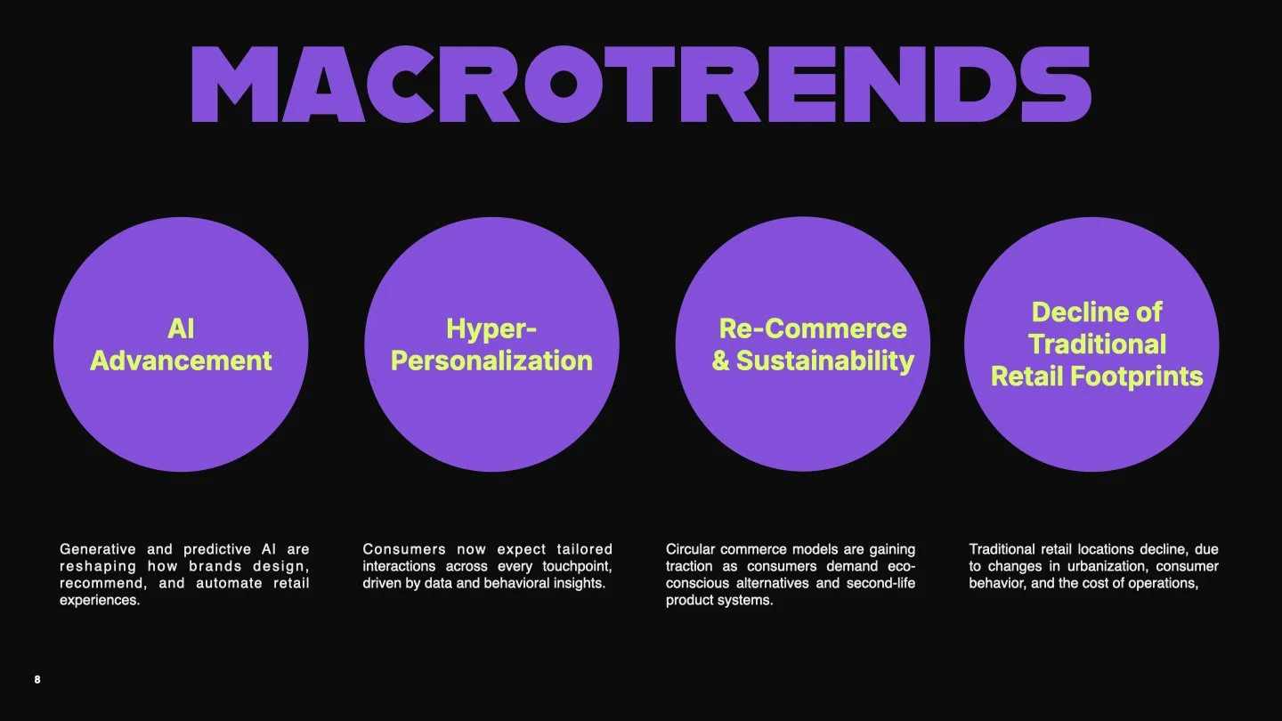 I analyzed user pain points like online product returns and small business struggles. I mapped trends in retail, fashion, virtual try-on, and livestream selling to discover new opportunity zones.